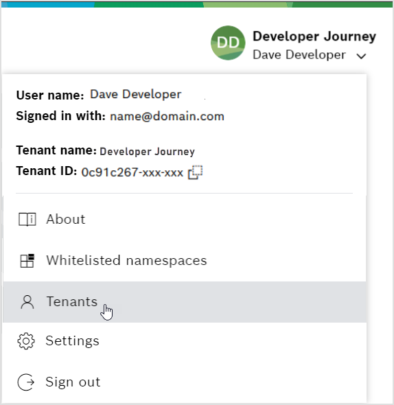 If you do not include your tenant ID in the URL, a dialog will appear and prompt you to choose a tenant. Read more: Tenants |