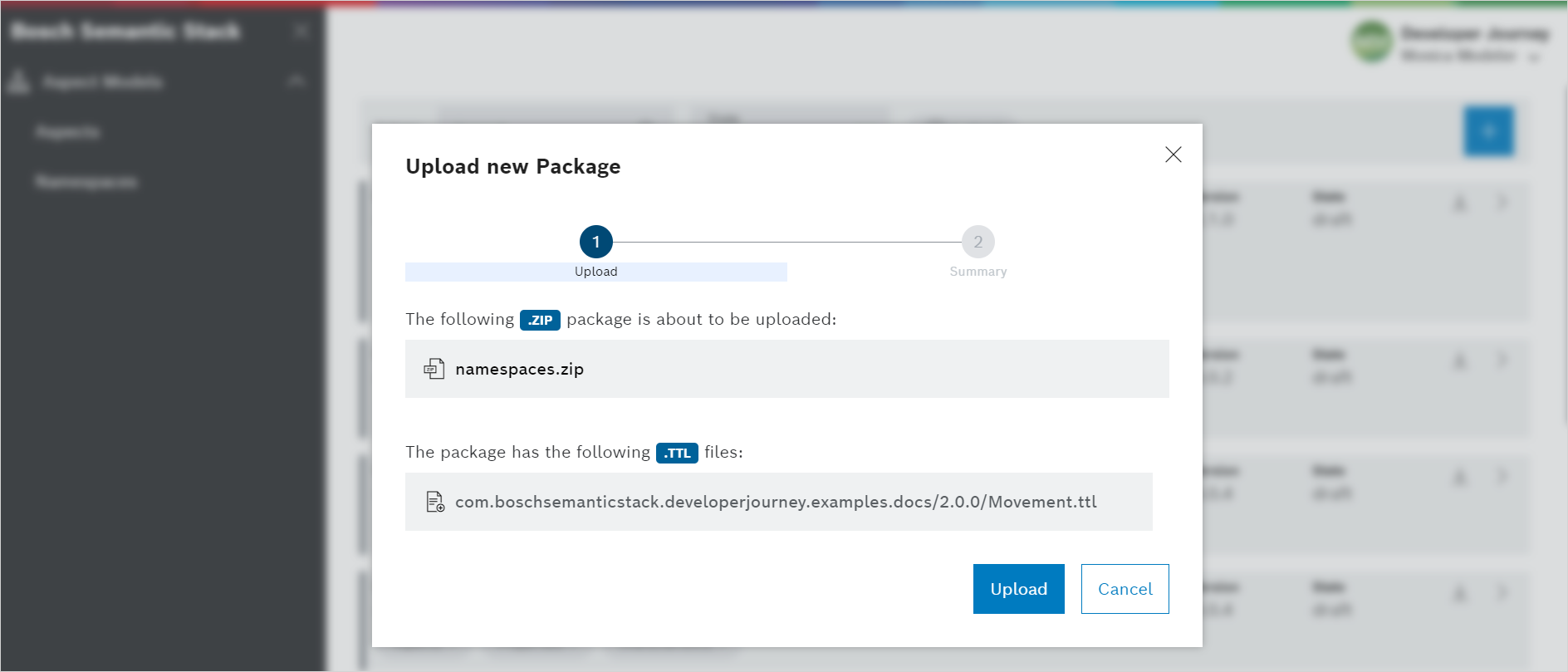 Upload an Aspect Model in the Aspect Model Catalog UI