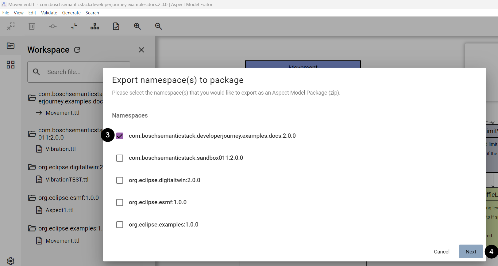 In your Aspect Model Editor, set up the workspace and create and validate your Aspect Models.