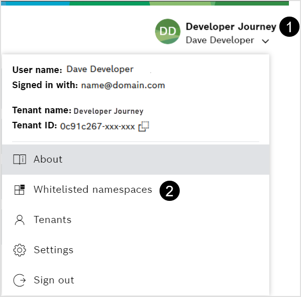 To claim and assign one or more namespaces for your tenant, email support.semantic-stack@bosch.com.
