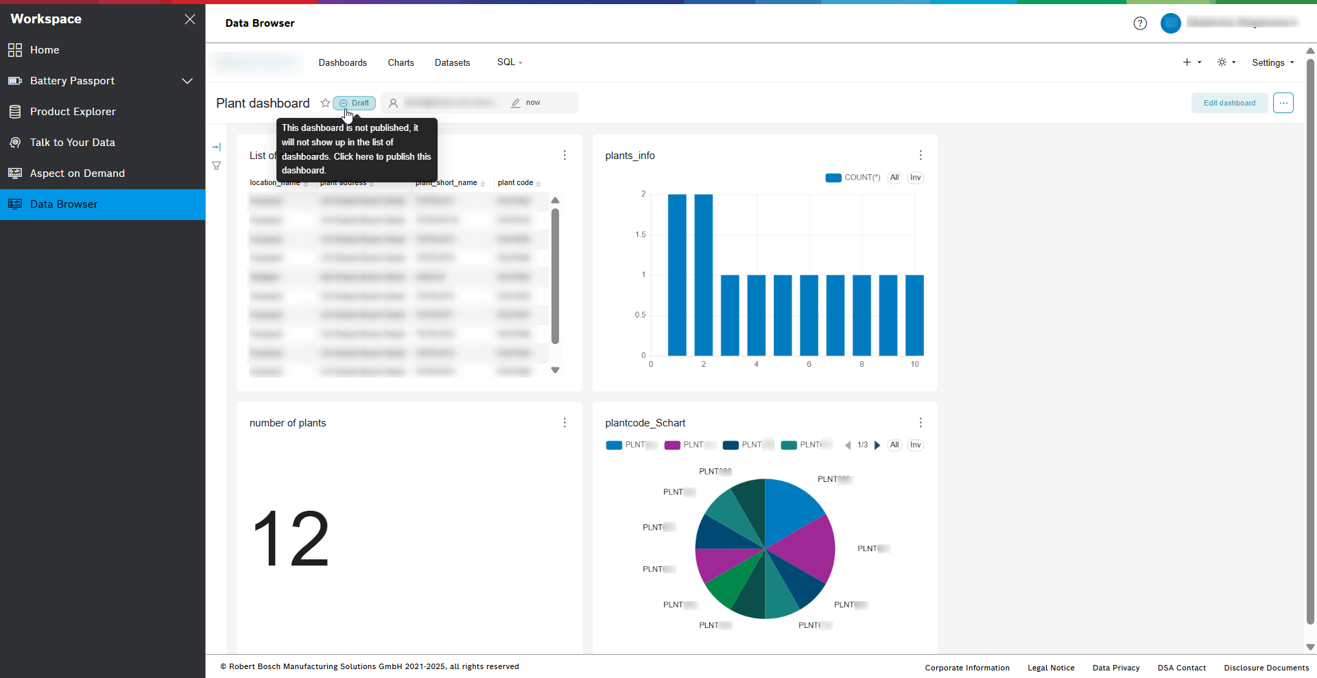 Publish by clicking on the Draft button next to the dashboard’s name.