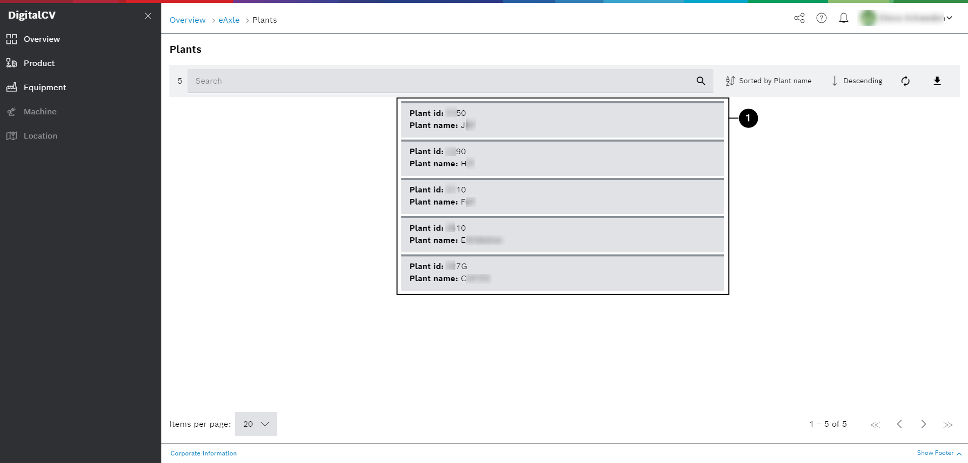 → After selecting the plant, the tabs Details and Work Centers are displayed. Details shows the master data properties of the equipment, the other tab the next level in the equipment hierarchy.
